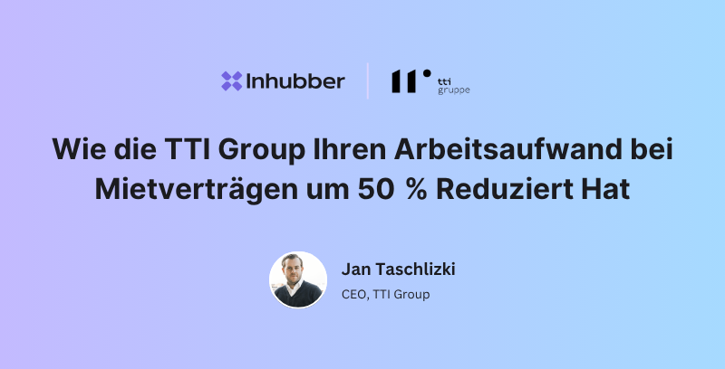 Vor der Implementierung von Inhubber stützten wir uns innerhalb der TTI einerseits auf kostenintensive und andererseits papierlastige Prozesse. Dank Inhubber sind die Kosten für Druck und Papier bereits in der Einführungsphase mit dem kleinen Team um 35 % gesunken und die Zeit bis zum Vertragsabschluss wurde um 55 % verkürzt. Kunden:innen, Agenten:innen und Mitarbeiter:innen sind begeistert – Mietvertrag digital unterschreiben.