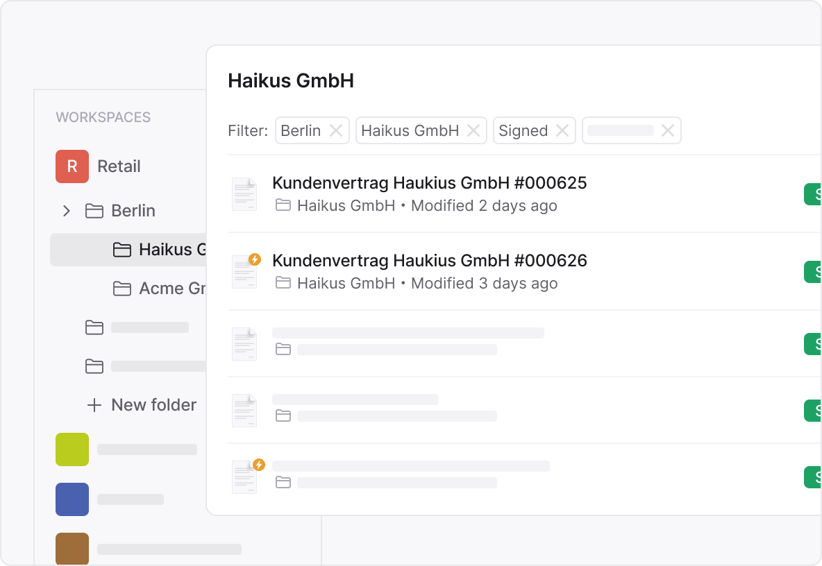 Whether it’s supplier agreements, lease contracts for store locations, purchasing terms, warehouse documents, or HR records – Inhubber allows you to manage all file formats such as PDF, DOCX, XLSX, and even scanned documents in a digital, compliant way.
