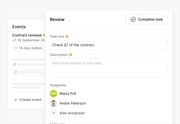 The AI analyzes each contract to extract key dates, tasks, and responsibilities. It then automatically creates tasks, reminders, and alerts. Even if your team changes, you maintain full visibility and control.