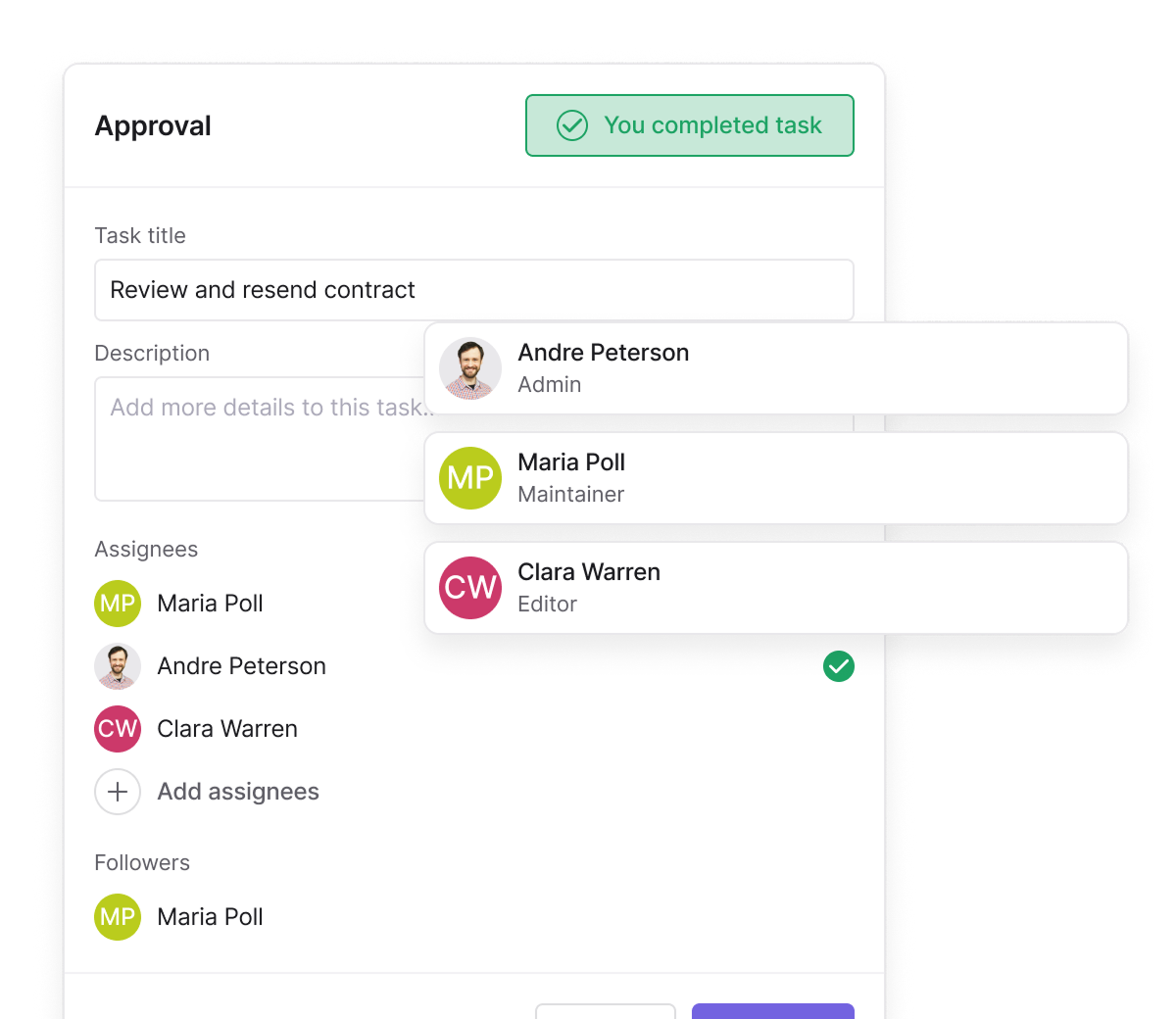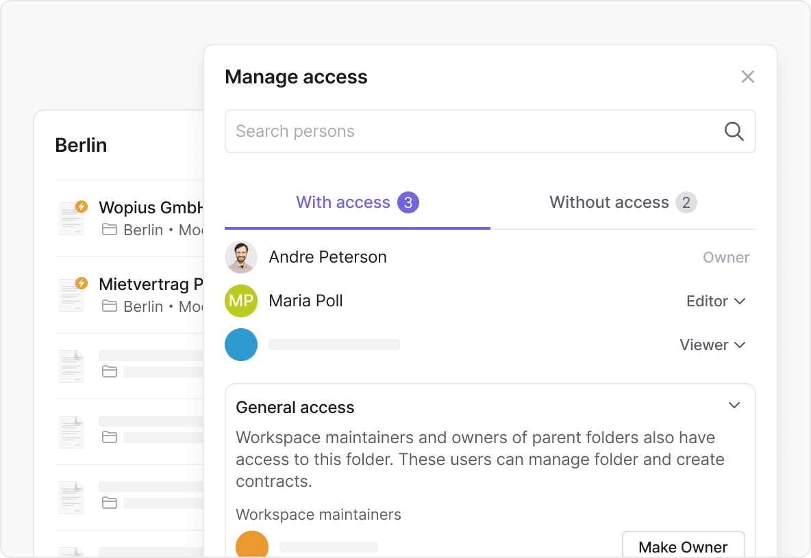 Viewers can see documents and timelines. Signers get signing rights. Roles come with predefined access levels.