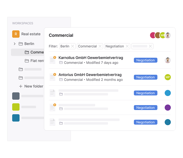 Effortlessly organize contracts with Inhubber’s custom workspaces. Use folders, subfolders, permissions, and full-text search to stay in control and compliant. Perfect for teams of any size.